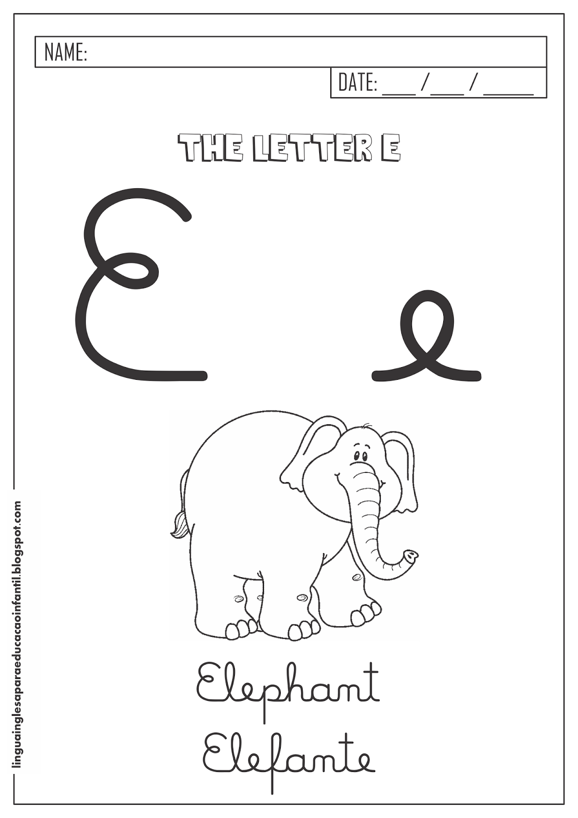 Língua Inglesa para Educação Infantil Atividade letra E em Inglês Educação Infantil